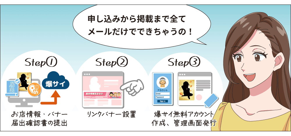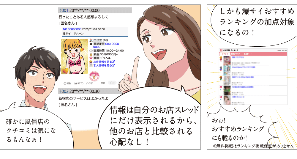 申込店舗には、爆サイ.com オリジナルの確認済マークが付与されます。そのためユーザーの信頼性が高まり、安心感を持ってご利用していただくことができます。