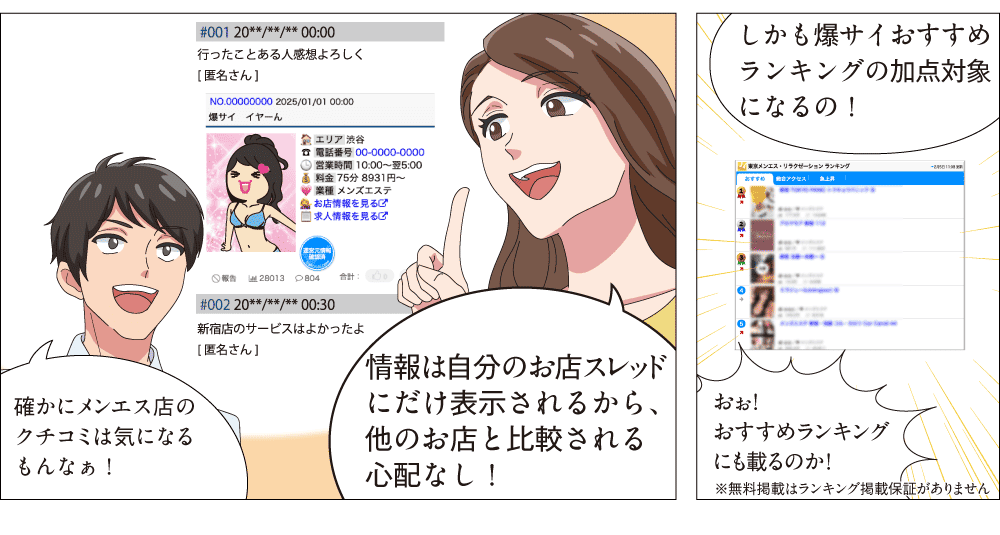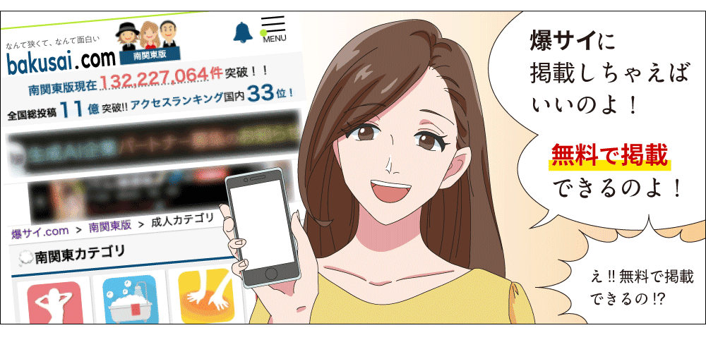 申込店舗には、爆サイ.com オリジナルの確認済マークが付与されます。そのためユーザーの信頼性が高まり、安心感を持ってご利用していただくことができます。