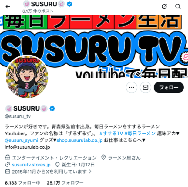 実家の安否確認を行った背景には、昨日の夜23時に発生した青森県八戸市の震度6強の地震がある。登録者189万人を超える人気ラーメン系YouTuberのSUSURUは、ファンに対しても安全な行動を促した。